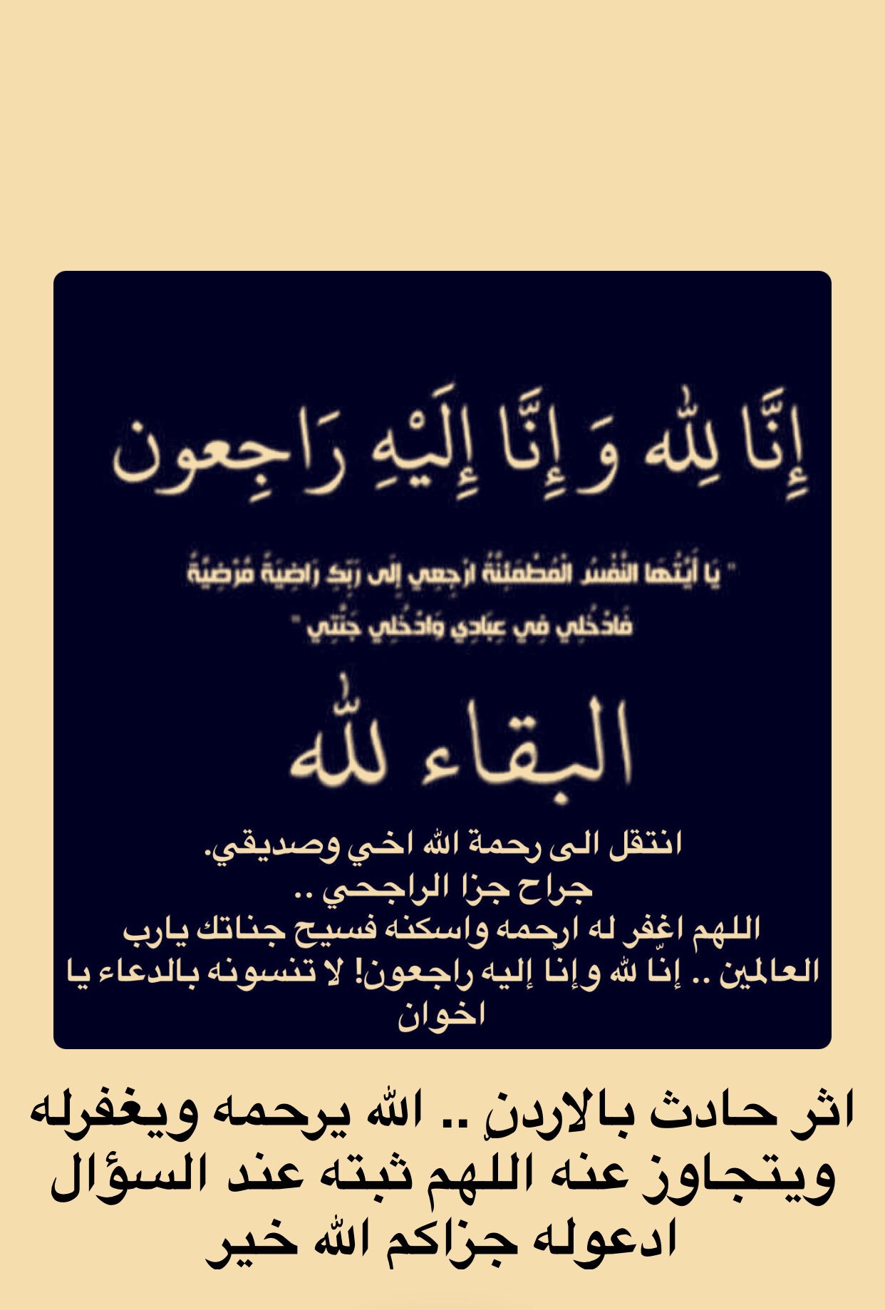 صدقه جاريه للمرحوم احمد عيسى عثمان Twitterissa اللهم اغفر له وارحمه واسكنه فسيح جناتك يارب العالمين انا لله وانا اليه راجعون ولا حول ولا قوة الا بالله لله ما أخذ وله ما