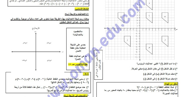 رياضيات الاول متوسط المستوي الاحداثي وتمثيل النقاط على المستوي الاحداثي Youtube